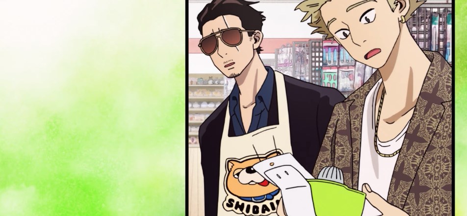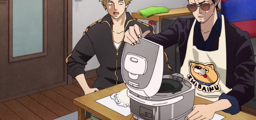 Аниме действительно стоит посмотреть. Сюжет захватывает с первых же минут. Забавно наблюдать за лицами прохожих, когда они видят, как мужчина с бандитским видом выбирает курицу и овощи или записывает рецепты на уроках по готовки от домохозяек.